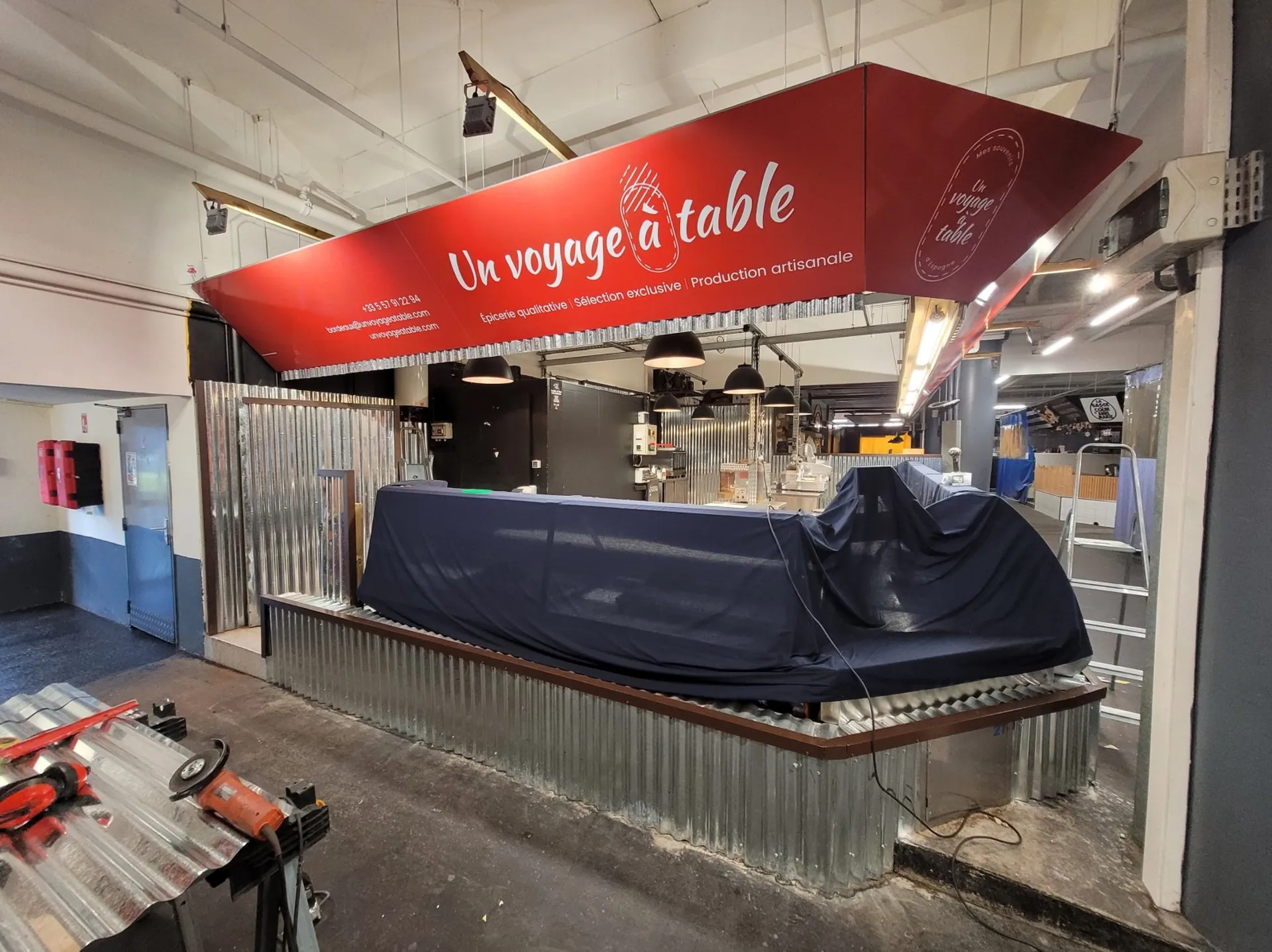 Ce dernier souhaitait installer une nouvelle devanture pour les locaux de son entreprise afin de favoriser l'image et les couleurs pour se démarquer de sa concurrence. Nous avons alors conçu, fabriqué et posé agencement qui vient parfaitement s'adapter à la configuration de ses locaux.