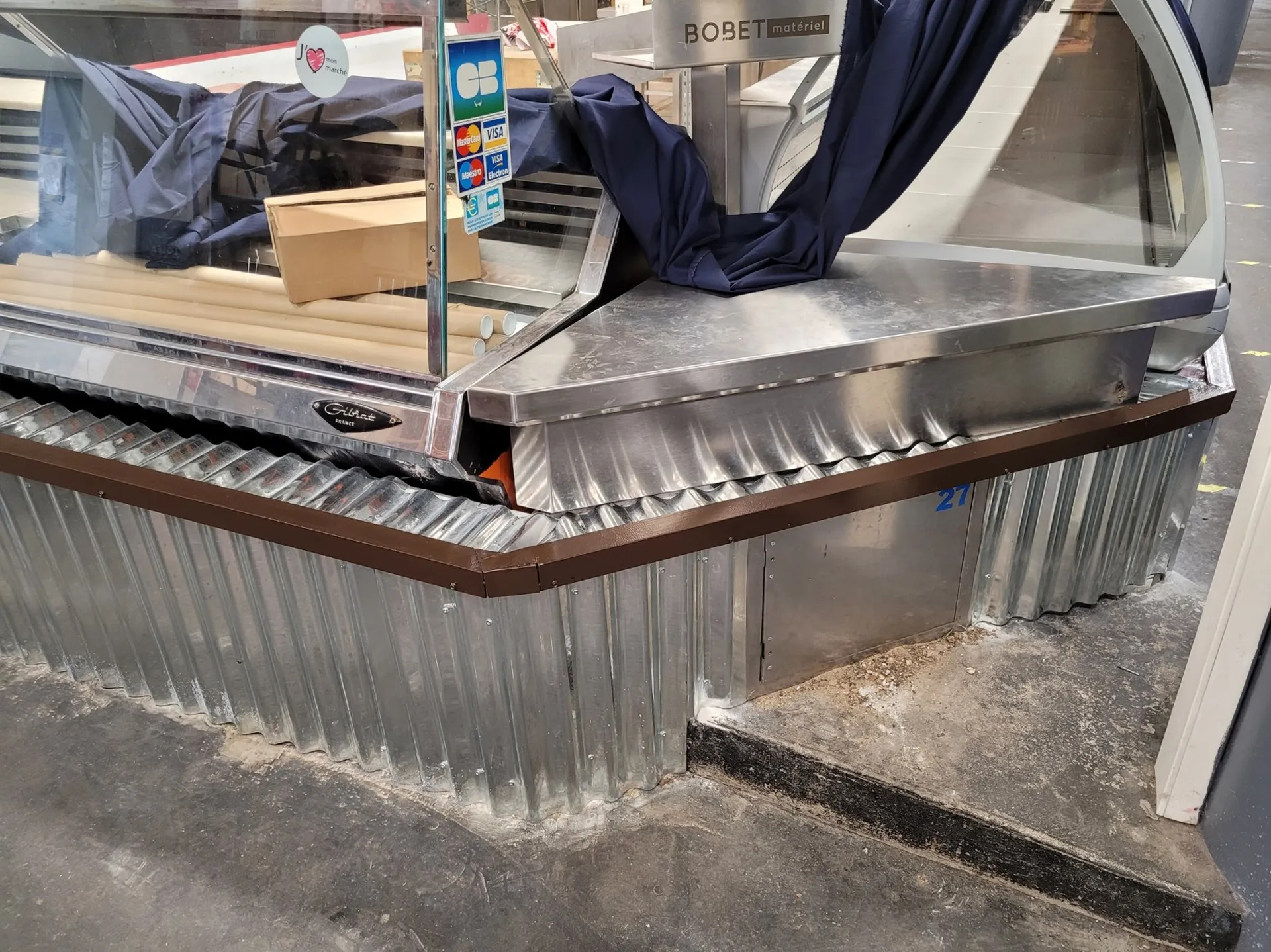 Vous habitez la région de Bordeaux ou plus largement le département de la Gironde et vous souhaitez agencer votre restaurant, votre magasin ou vos locaux professionnels ? Chez Chausse Construction Métallique nous construisons des habillages et des agencements métalliques en divers alliages (aluminium, acier , inox...) sur mesure et nous assurons également leur pose directement chez vous. Ici nous vous présentons une vitrine d'une boucherie entièrement repensée pour un restaurateur. Vitrine conçue sur mesure pour ces locaux et cette enseigne à Bordeaux.