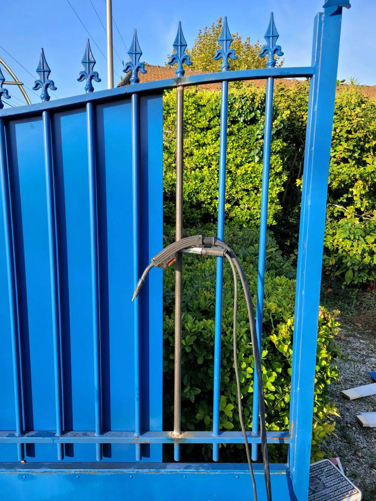 Chausse Construction a changé le barreau de ce portail qui avait été tordu par un camion au cours d'un déménagement. Nous avons procédé au changement du barreau par découpe et soudage chez le client pour éviter un démontage du portail et limiter les coûts.