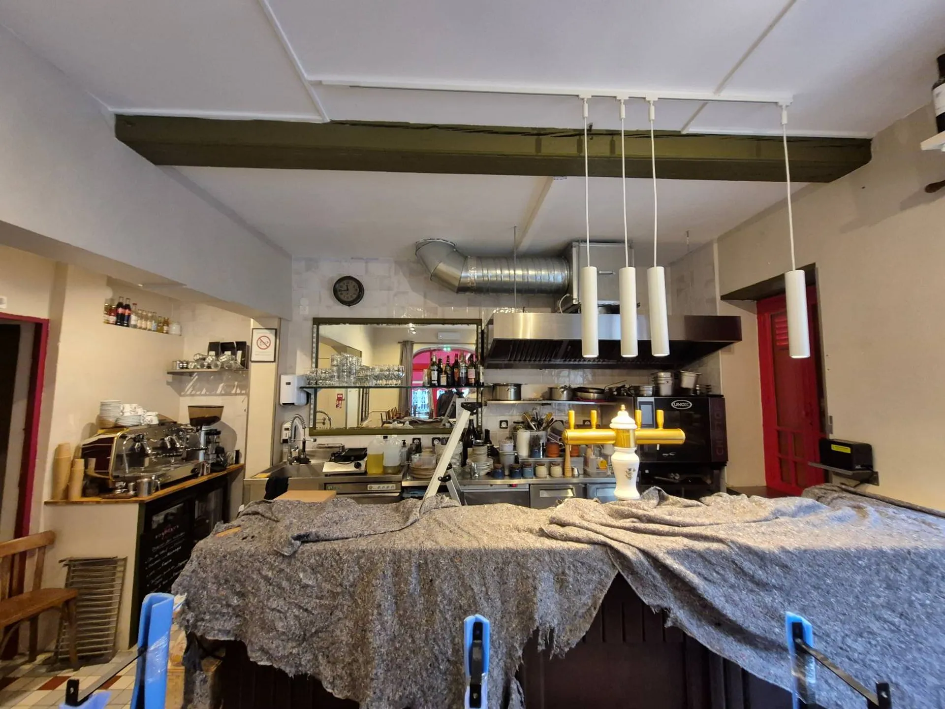 Fabrication et pose d’un ciel de bar en acier sur mesure avec paroi coupe-feu à Bordeaux