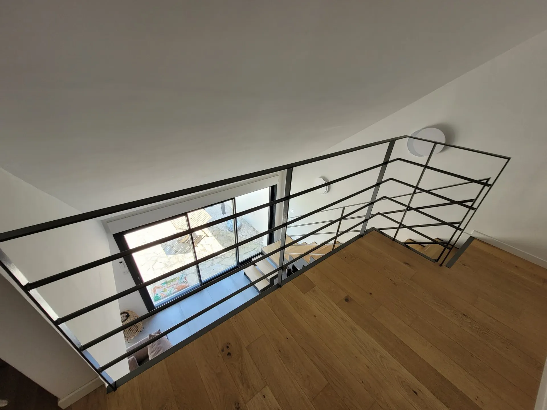 Dans le cadre de la rénovation d’une maison à Andernos-les-Bains, CHAUSSE CONSTRUCTION MÉTALLIQUE a conçu et fabriqué un escalier sur mesure en bois et acier, accompagné d’un garde-corps sécurisé sur le palier et tout au long de l’escalier.