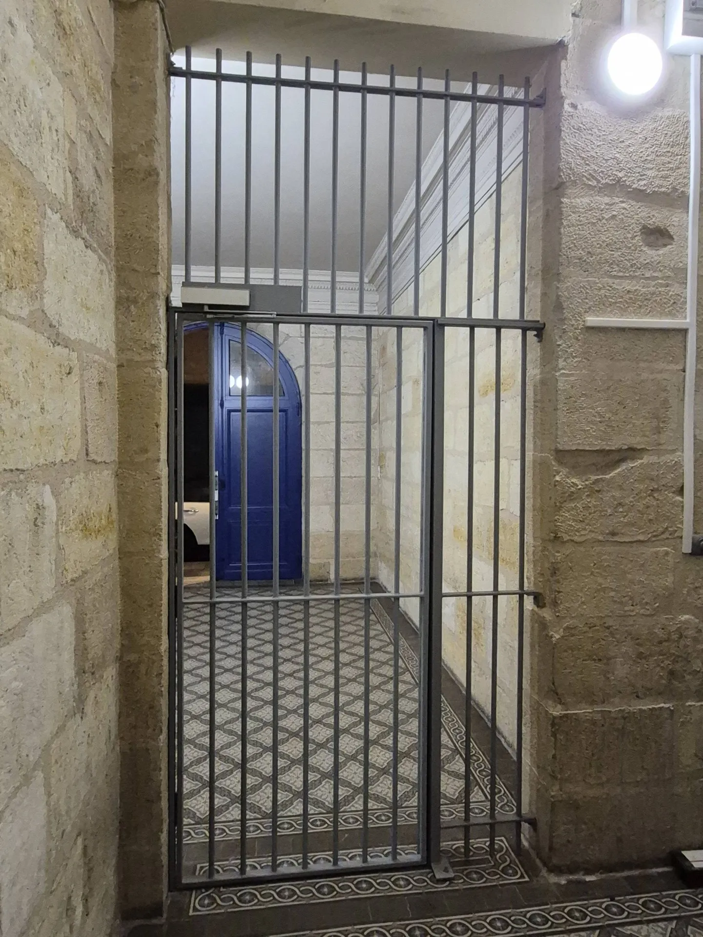 Dans le cadre de la sécurisation d’un immeuble ancien sur Bordeaux, CHAUSSE CONSTRUCTION MÉTALLIQUE a assuré la fabrication complète et la pose de grilles de protection métalliques sur mesure au sein d’un hall d’entrée en pierre.