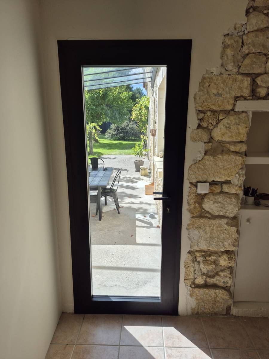 Après une prise de cotes précise et une étude adaptée à l’existant, notre équipe a conçu et installé une porte-fenêtre un vantail toute hauteur, issue de la gamme Profils Systèmes Cuzco 70. Réalisée en aluminium thermolaqué classe 2 RAL 9005 noir fine texture, cette menuiserie allie élégance, résistance et facilité d’entretien.