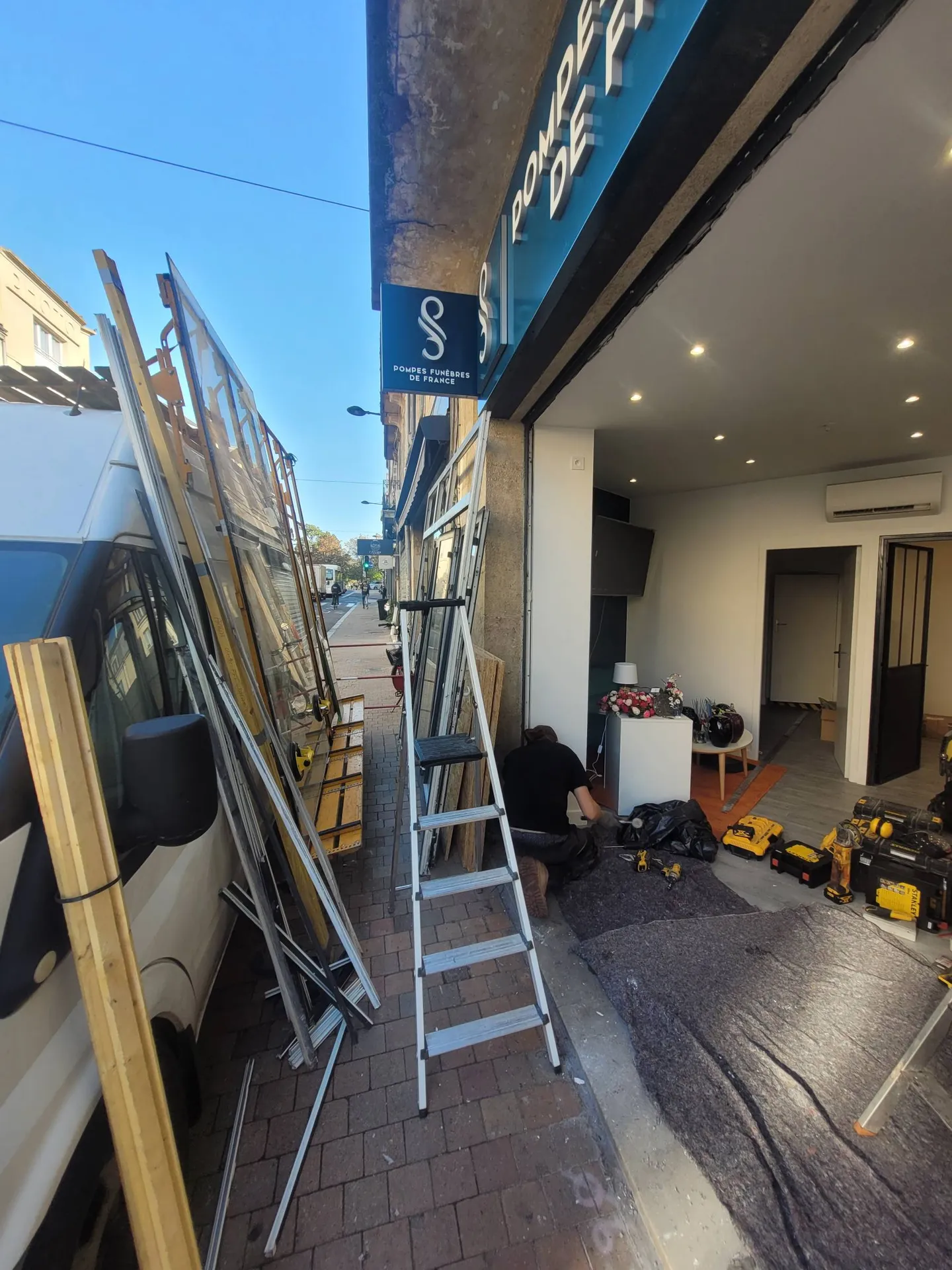 CHAUSSE CONSTRUCTION MÉTALLIQUE, situé à Salaunes, a récemment réalisé la fabrication et la pose d’une vitrine en aluminium sur mesure pour le nouveau magasin de notre client Pompes Funèbres de France, Place Gambetta à Bordeaux.